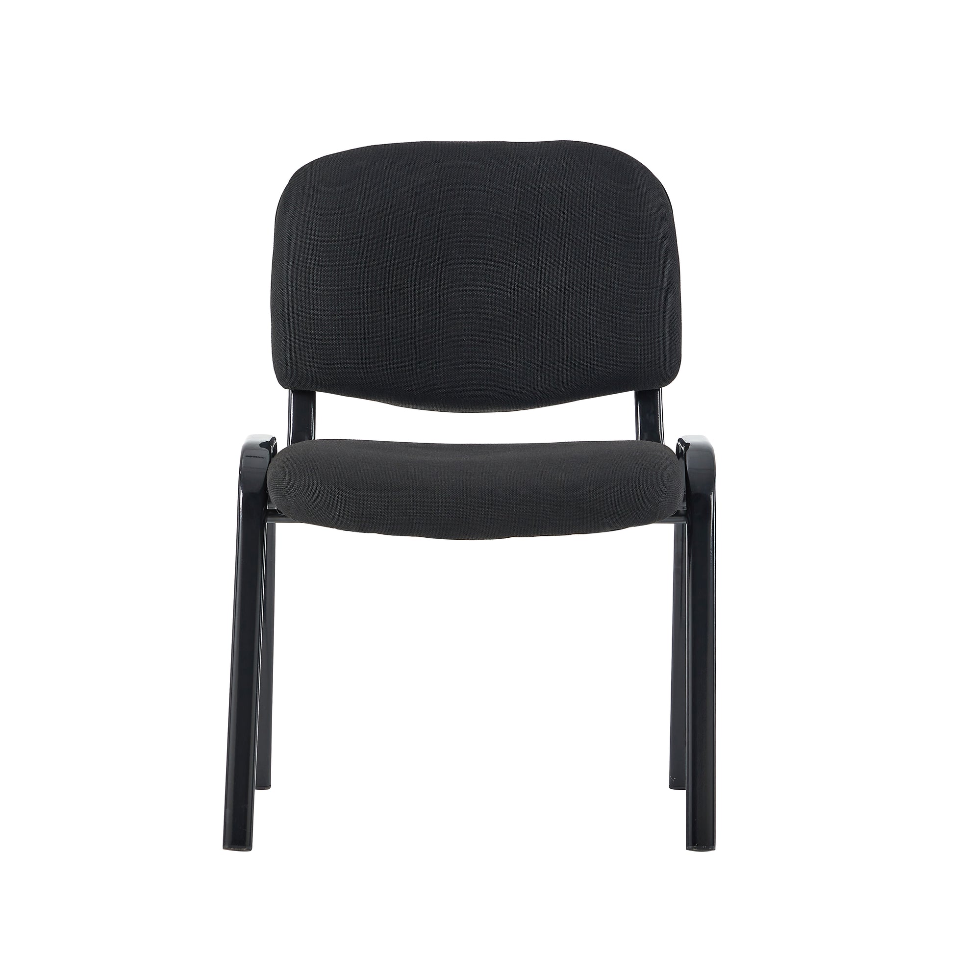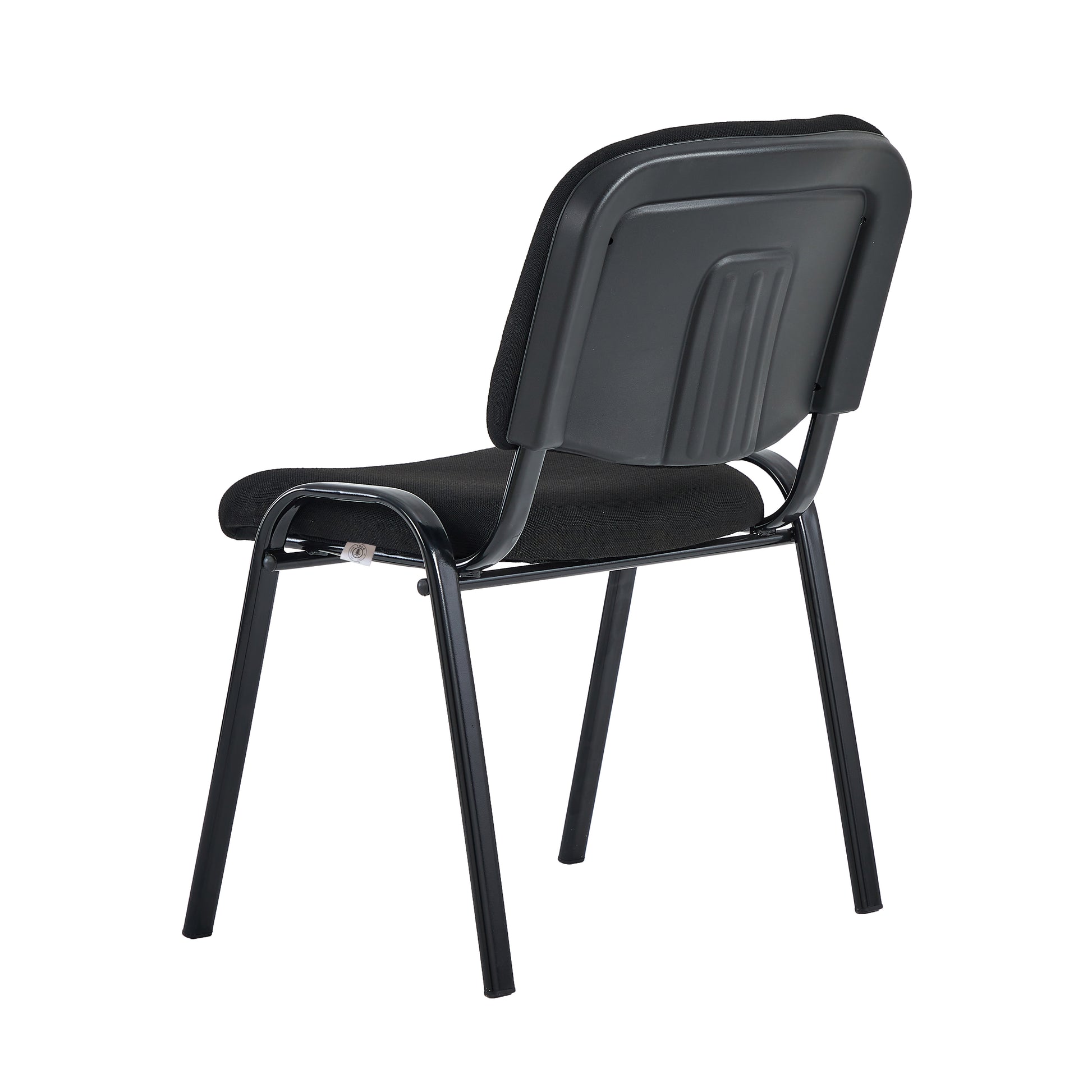 Upgrade your seating with this comfortable and durable black stackable chair. Designed for offices, conference rooms, waiting areas, event spaces and even home offices, this chair features a sturdy metal frame with a sleek black finish. The padded seat and backrest are covered in high-quality black fabric, providing excellent support for long periods of sitting.